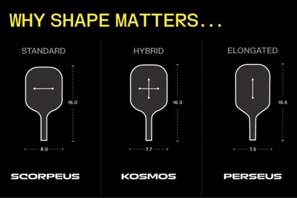 Về Kosmos, bạn cần biết rằng theo tiêu chuẩn vợt pickleball được chia thành ba loại hình dạng chính:
