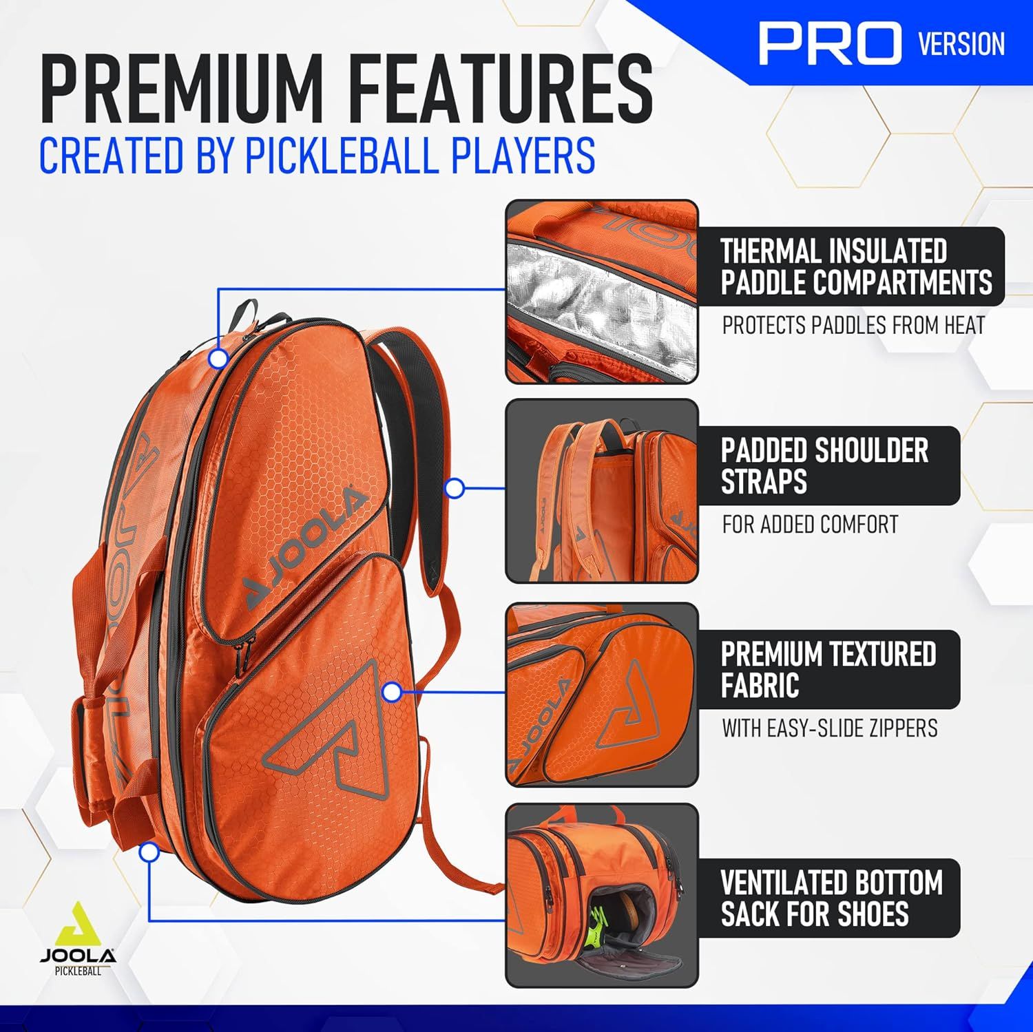 ĐƯỢC TẠO RA BỞI CÁC NGƯỜI CHƠI PICKLEBALL: Những chi tiết nhỏ mà chỉ các vận động viên thực sự mới nghĩ đến. Ngăn đựng vợt cách nhiệt bảo vệ khỏi nhiệt độ cực đoan, ngăn dưới có lưới cho giày, ngăn đựng bóng, móc treo hàng rào và ngăn lót mềm cho các vật dụng giá trị.