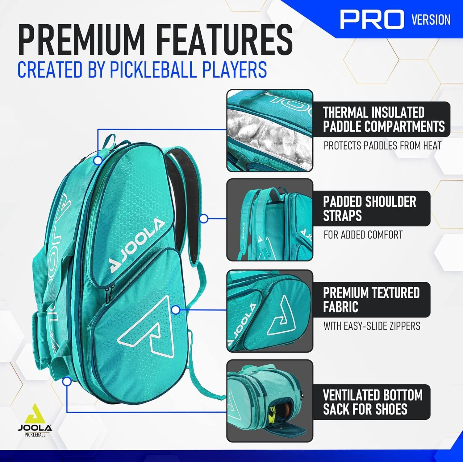 ĐƯỢC TẠO RA BỞI CÁC NGƯỜI CHƠI PICKLEBALL: Những chi tiết nhỏ mà chỉ các vận động viên thực sự mới nghĩ đến. Ngăn đựng vợt cách nhiệt bảo vệ khỏi nhiệt độ cực đoan, ngăn dưới có lưới cho giày, ngăn đựng bóng, móc treo hàng rào và ngăn lót mềm cho các vật dụng giá trị.
